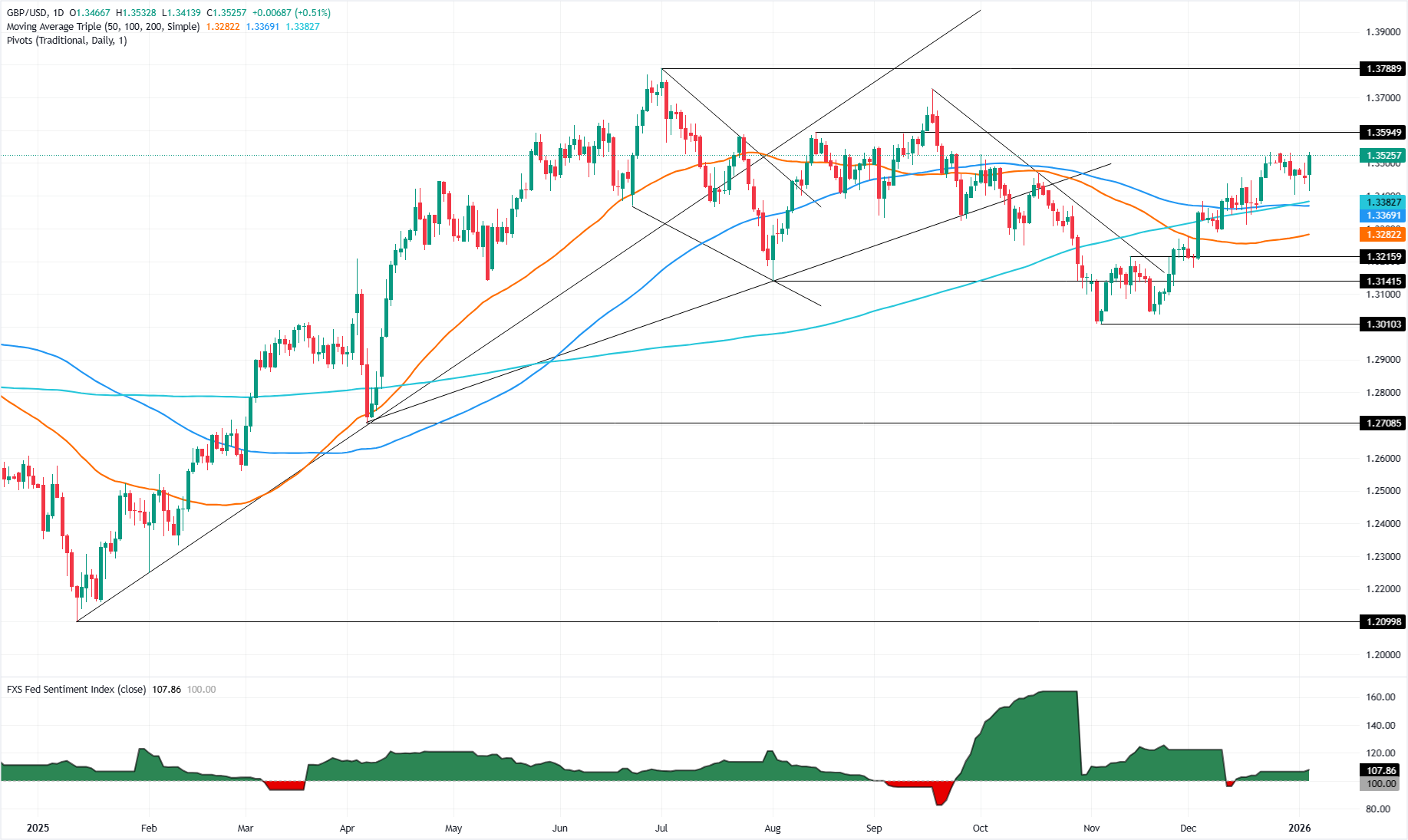 英镑/美元的技术图景表明,该货币对可能会突破12月的高点1.3534,打开进一步上涨的空间。如果买方突破1.3550,预计近期将测试1.3600的关口。相反,如果英镑/美元跌破1.3500,卖方可能会将汇率压低至1.3400以下,关注200日简单移动平均线1.3374的测试。