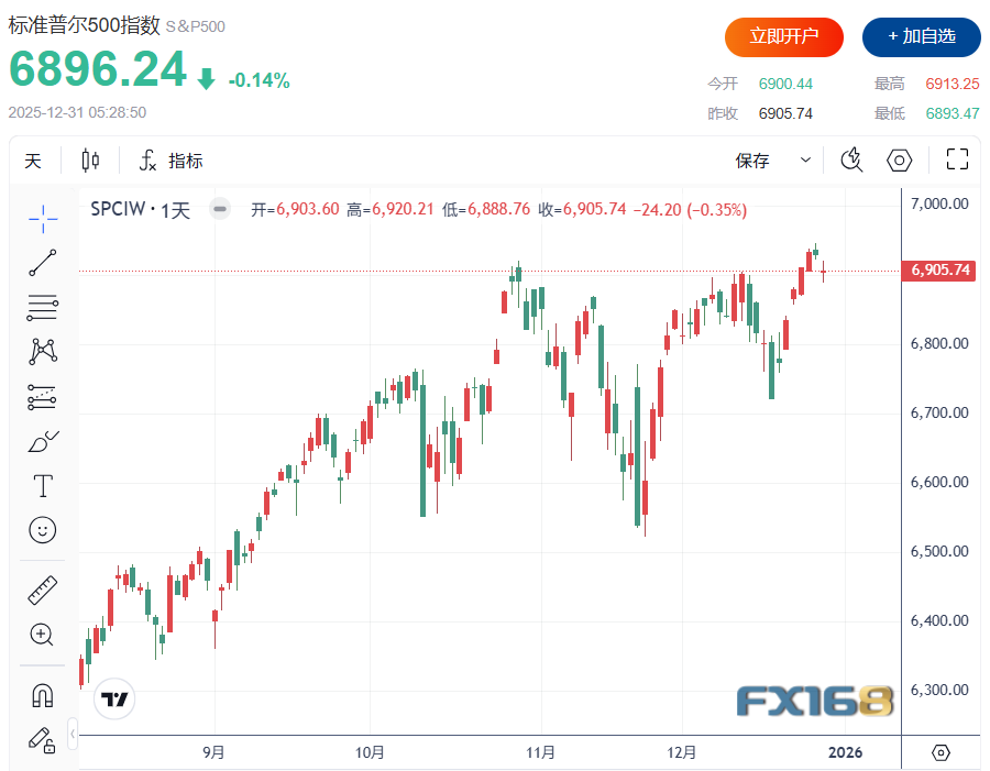FX168财经报社(北美)讯 周二(12月30日),美国股市小幅回落,标普500指数录得连续第三个交易日下跌。年末交易清淡、部分资金选择获利了结,再叠加科技股持续承压,拖累三大股指继续走弱。与此同时,美联储12月会议纪要显示官员对本月降息存在明显分歧,并讨论未来是否应在进一步调整利率前保持观望,令市场对2026年政策路径的预期更趋谨慎。