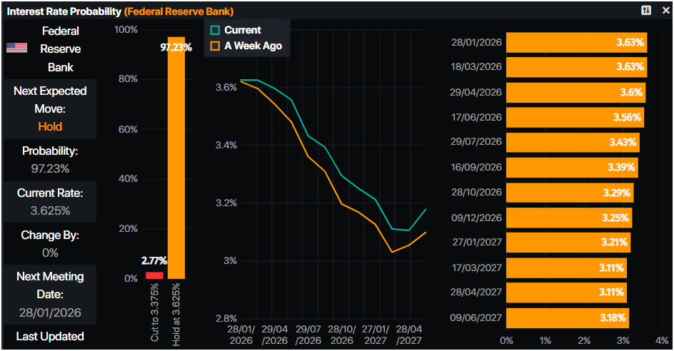 - 尽管数据疲软,但市场排除了1月美联储降息的可能性,因美联储领导层周围的政治紧张局势。
