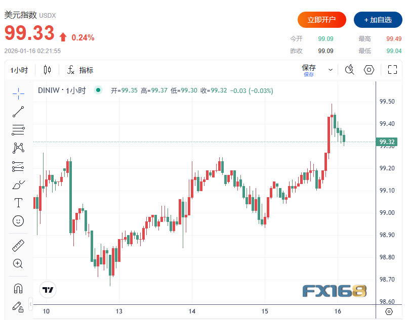 FX168财经报社(北美)讯 周四(1月15日),美元走强并刷新阶段高位,此前美国最新初请失业金数据意外大幅好于预期,进一步强化市场对美联储在未来数月维持利率不变的押注。与此同时,美国总统特朗普针对伊朗局势释放“观望”信号,市场对美国短期军事打击伊朗的担忧降温,风险偏好回升,美股集体反弹,而油价则因地缘溢价回吐而大幅跳水。