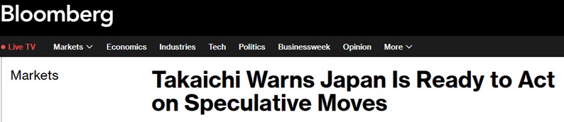 #日本市场#FX168财经报社(亚太)讯 美国彭博社周一(1月26日)报道称,在日元走软和债券收益率飙升之际,日本首相高市早苗(Sanae Takaichi)向金融市场发出了新的警告,称政府已准备好采取行动。