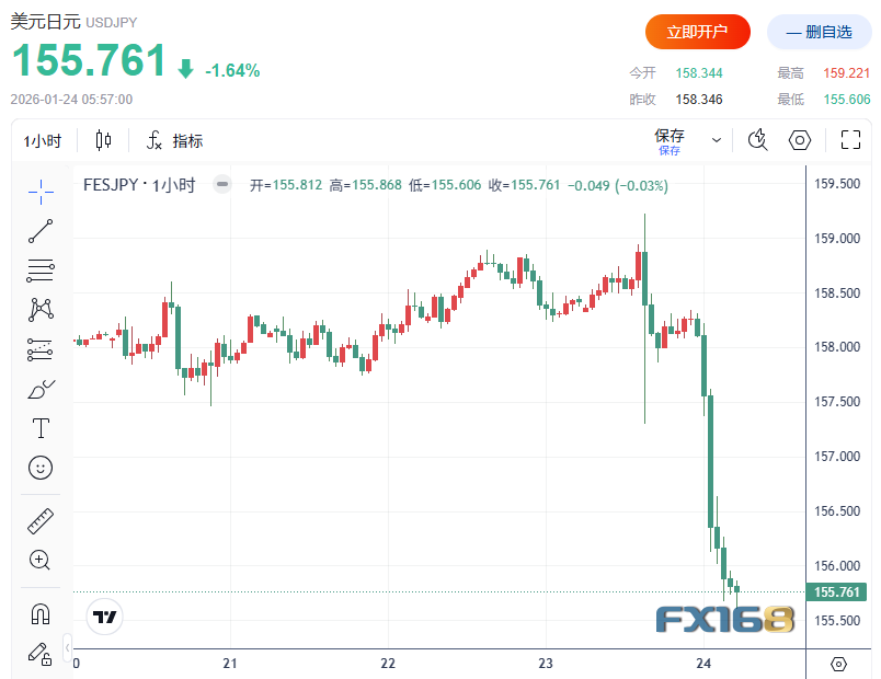 汇率走势显示,美元/日元在美东时间周五午间仍徘徊于157.50附近,但随后快速下滑,下午一度跌至四周低点155.606。