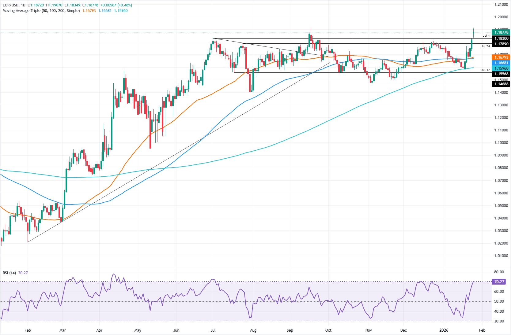 技术展望:欧元/美元突破1.1800,瞄准1.2000